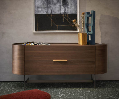 Captivating, stylish and sleek: this collection lends itself to countless possible uses, with plenty of options for personalising and interpreting your space. It features the geometric minimalism of a cylinder in its design. A distinctive feature is the practical recess at the top, designed as a functional and versatile tray. Available in a variety of finishes and combinations, this collection includes single-drawer and double-drawer night tables, stackable or with a base, and the dresser version, available with either a base or a plinth.