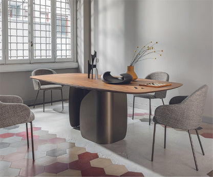 Twins is a table with a great visual impact thanks to its base, made up of two curved and moulded sheet elements that, like two wings, make the top take flight visually. There are many finishes available, allowing you to interpret the table in a classic or modern way.
