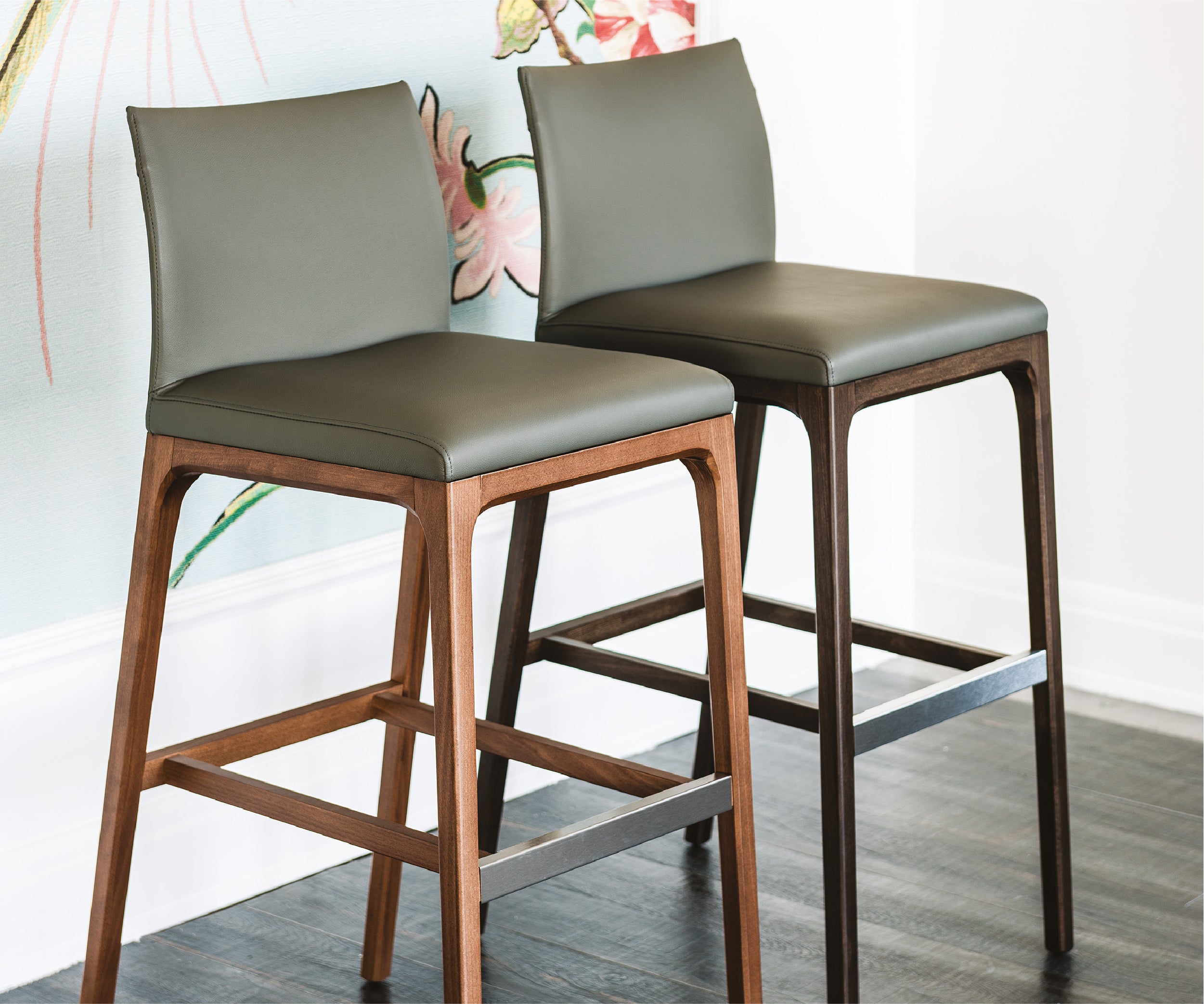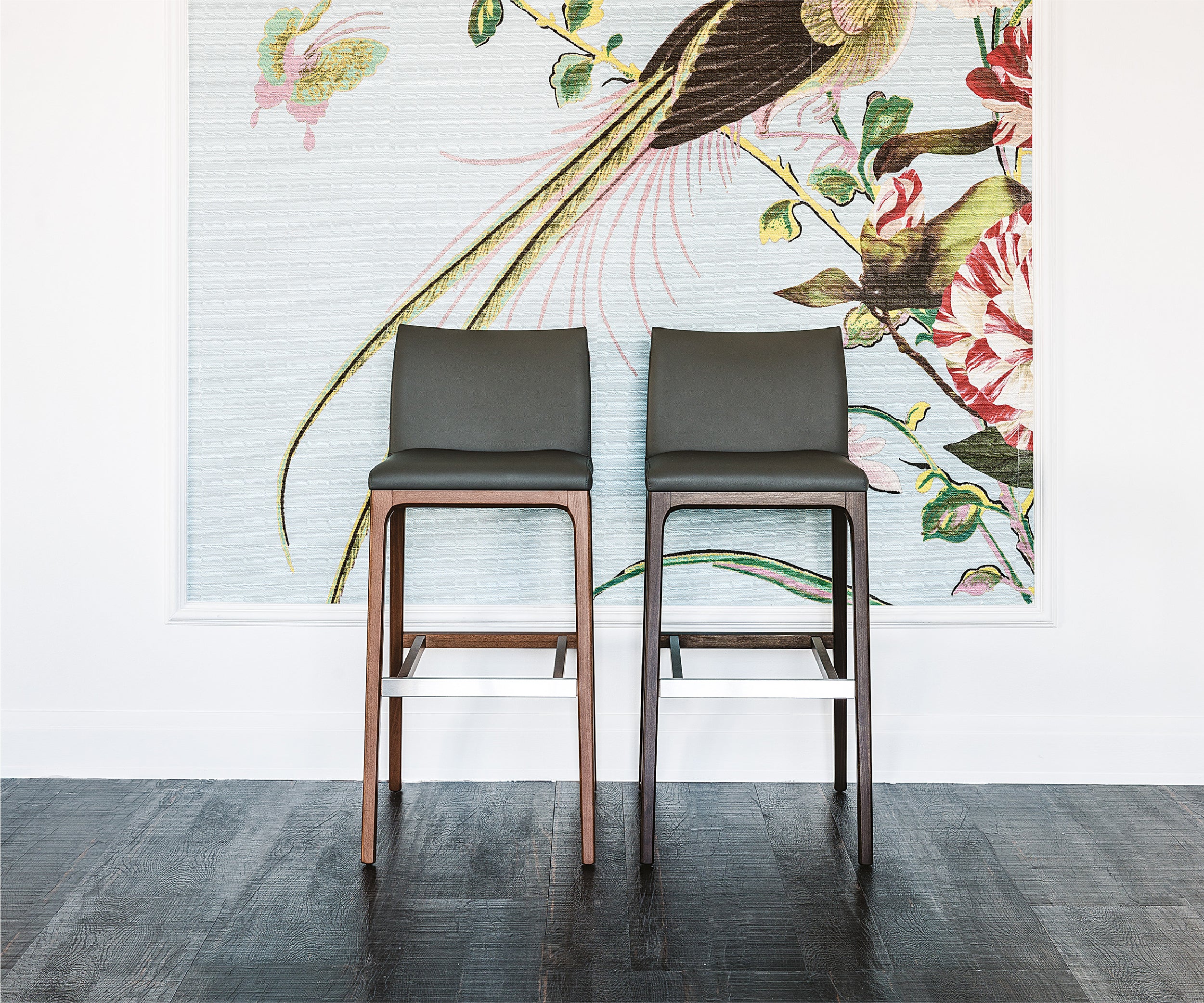 The genuine comfort of a modern design chair is complemented with a timeless allure. Arcadia has a sophisticated/refined style: its elegant simplicity - combined with the refined workmanship of the wooden base - makes it an essential component for the living room area, both for residential projects and design workspaces. The structure made of high-quality solid wood and the refined range of finishes create multiple style combinations that are available in all versions, including the one with a high back, the kitchen stool and the Arcadia Couture model. The latter is made by a glam diamond-quilting on the backrest of the soft leather chair.