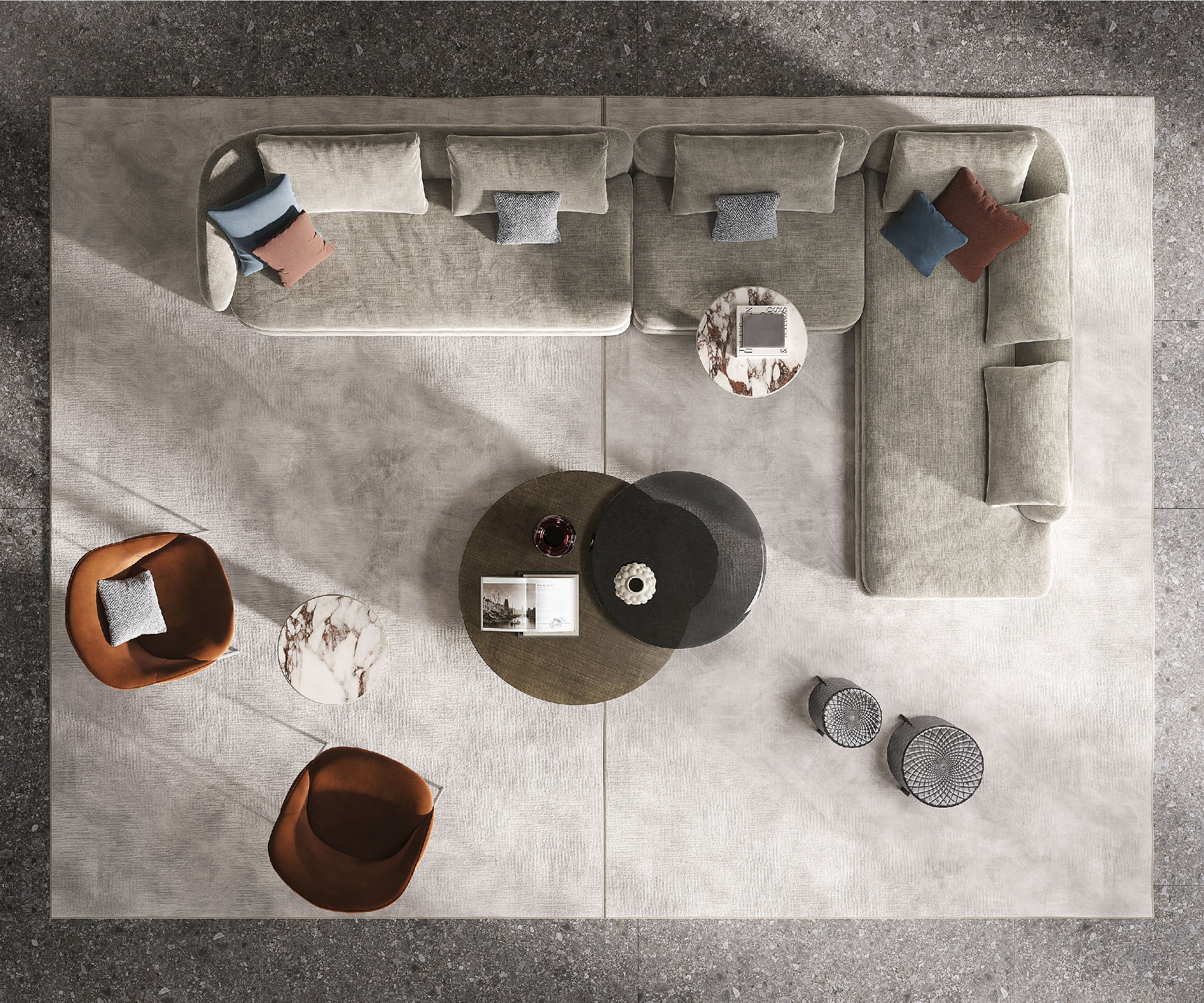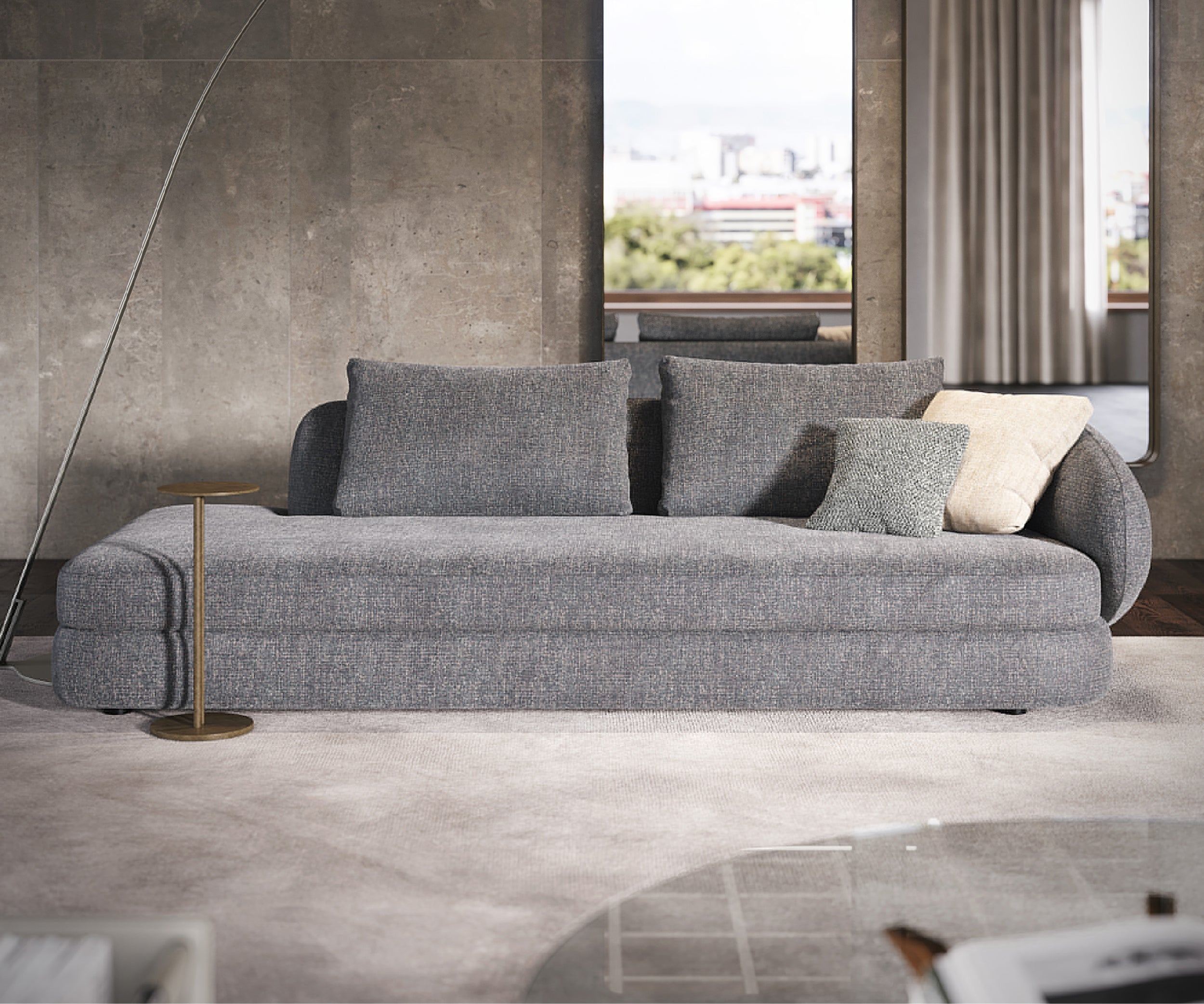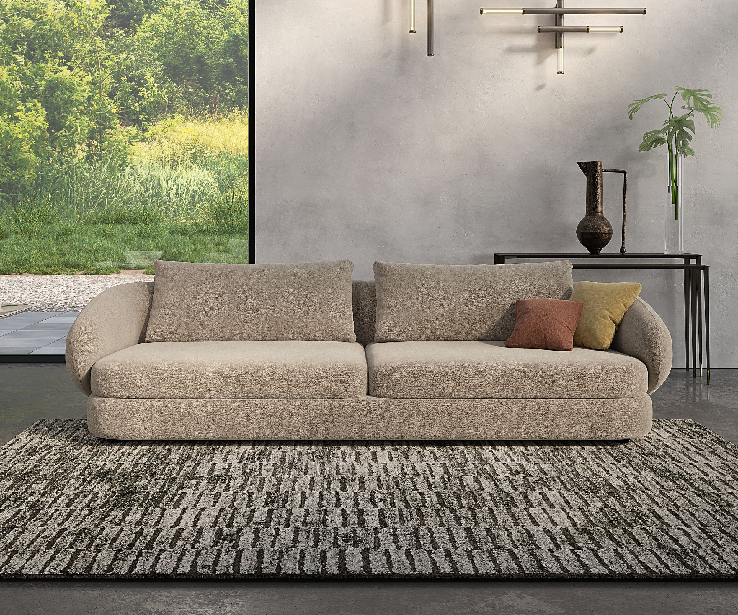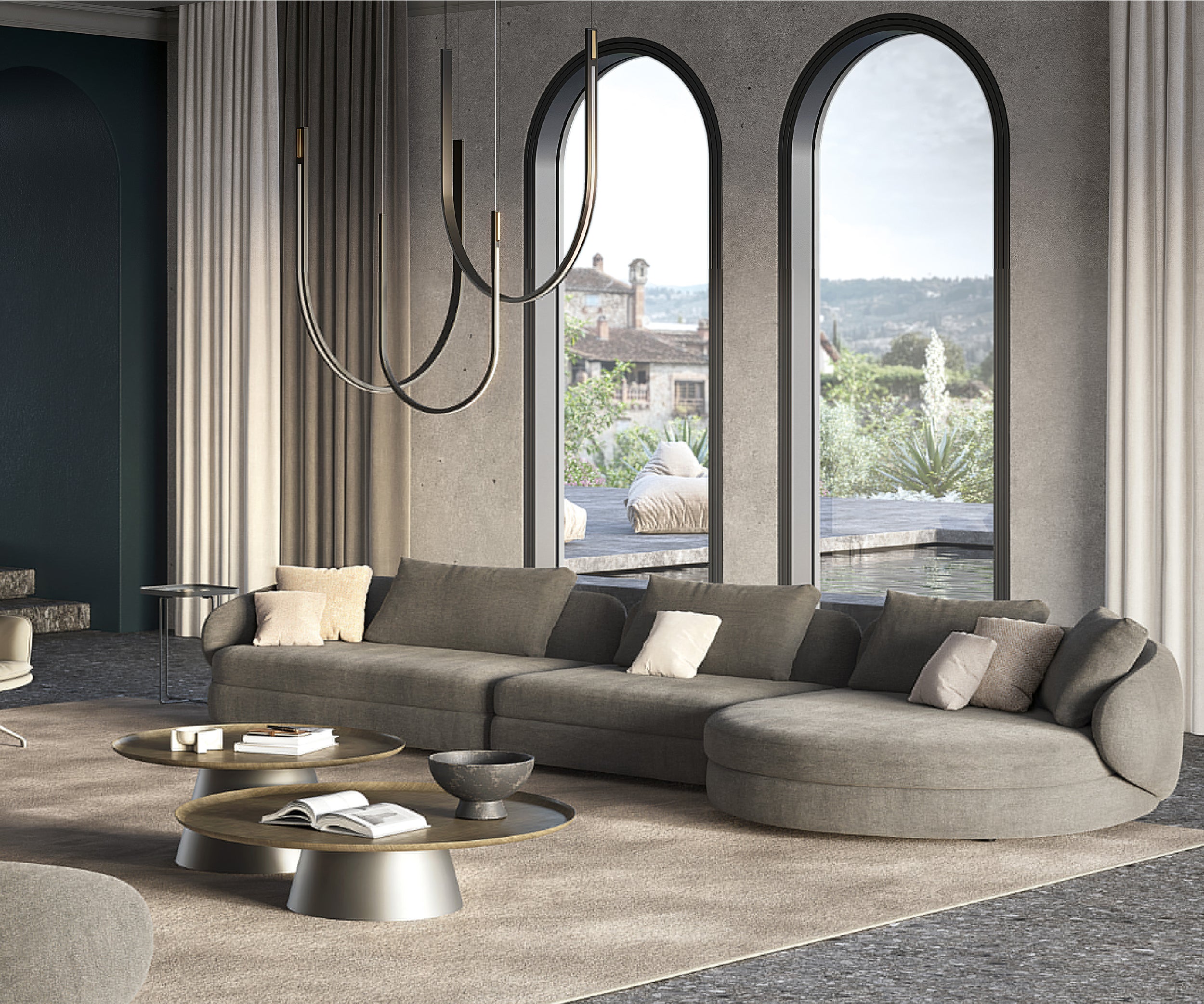 Drawing inspiration from harmonious shapes of nature, the backrest envelops soft, fully removable cushions; the unique all-round appearance allows for the creation of a tranquil and relaxed atmosphere in your open space. The armrest, the absolute protagonist of the composition, gives the impression of surrounding you in a warm embrace, making you feel that you are in an intimate and cosy place. The Craig is also a modular and versatile sofa that will adapt to your space: choose linear configurations for one-to-one conversations, create a cosy corner configuration or add a chaise longue in the round and square versions.
