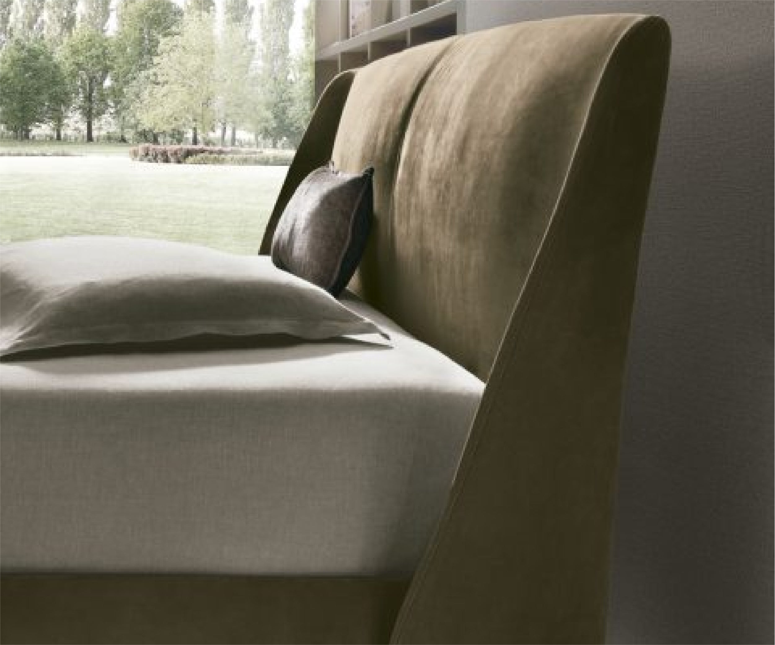 A bed that protects your body, your mind and your dreams. The wraparound sides characterise the design of the headboard while the stitching enhances its accurate detailing. Much more than a piece of furniture, this bed is a really inviting and elegant place to be.