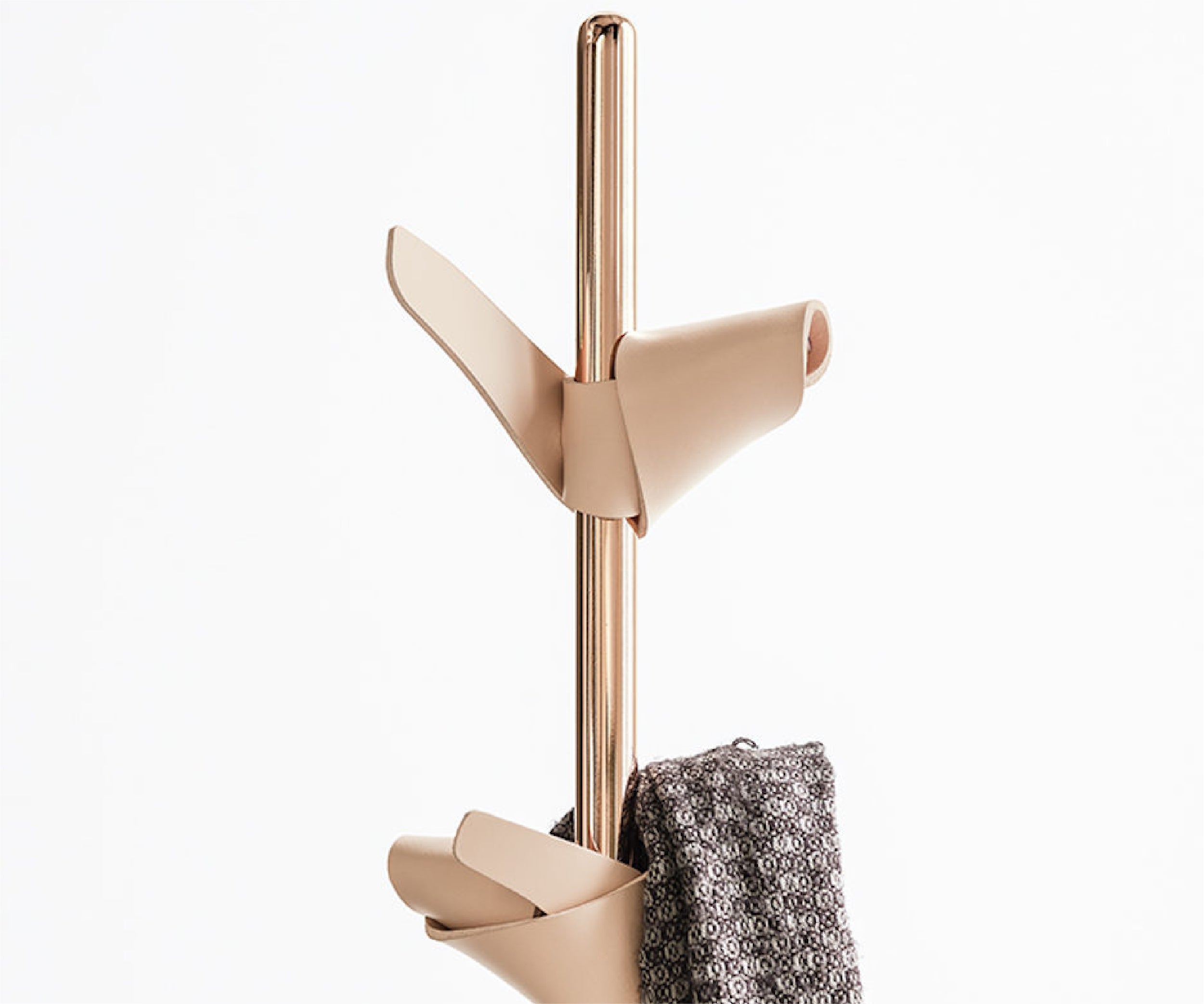 Apelle TREE coat rack with structure in metal and hide or Tuscan hide.