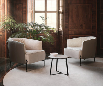 Diga is a sophisticated armchair, with a refined aesthetic language and enveloping lines, that offer the ultimate form of comfort thanks to its outstanding support and padding. Unusual detail are the legs that come out of the body of the seat, placing them externally to the structure.
