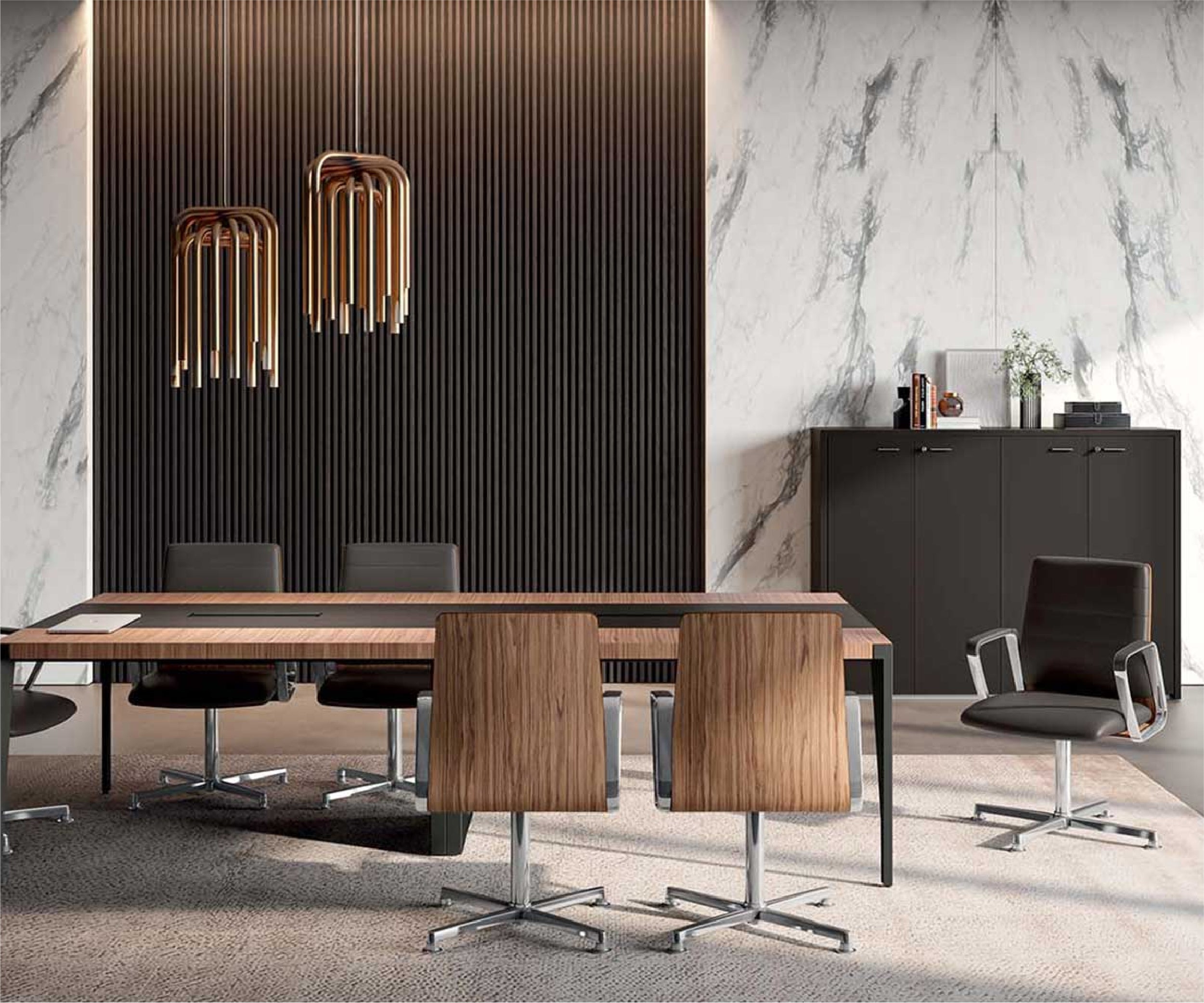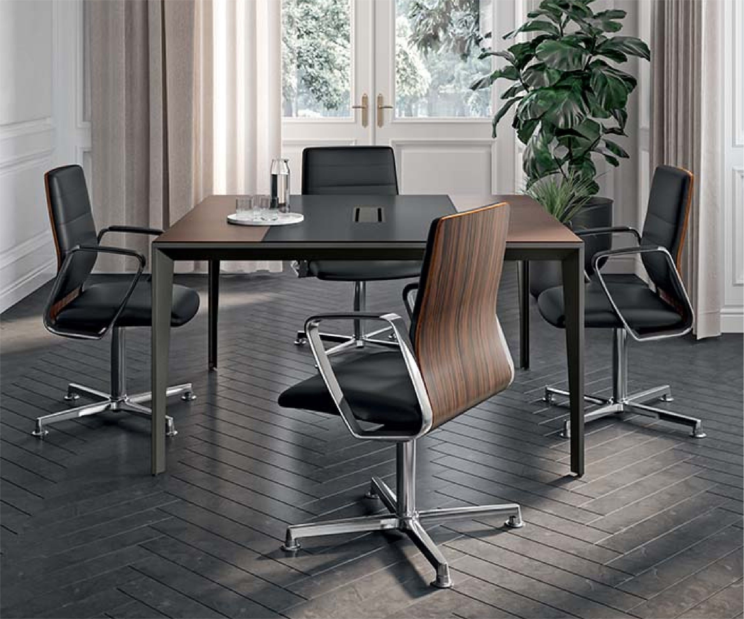 Based on requirements, the seat is available in two versions, with a high or low back, which can be finished with veneered wood and other executive furniture, to convey aesthetic coherence and visionary elegance.