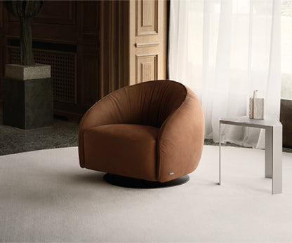 The Nest Swivel armchair becomes even more embracing, with an even richer comfort and design, which invite meditation and relax. The increase of the width and the depth of the seat are balanced by the circular base that allows a 360° rotation of the armchair.