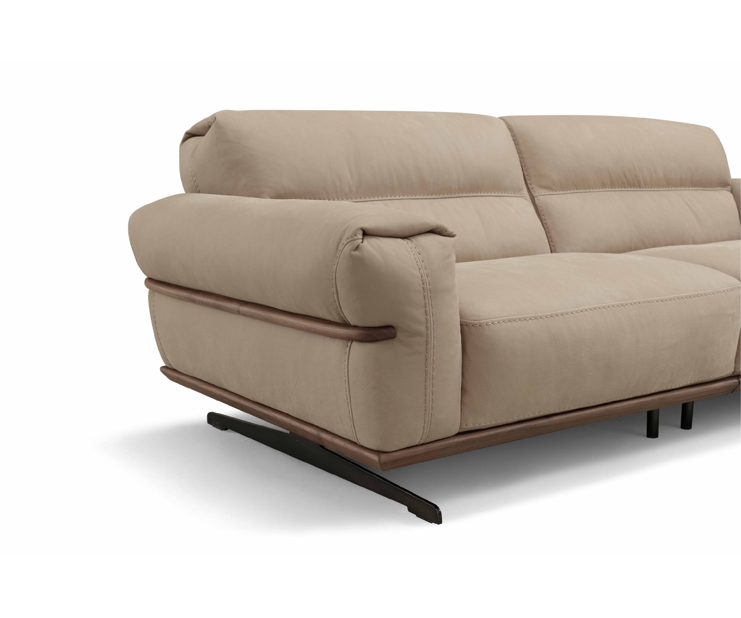 The base in canaletto walnut and the side profiles with chrome or gray smoke finishes add a touch of technological charm to the Sofa, making it an ideal choice for those who seek both elegance and innovation.