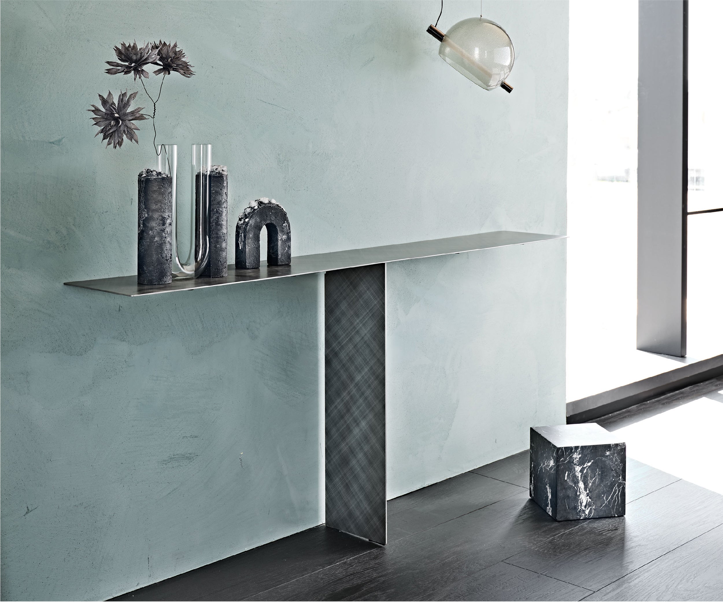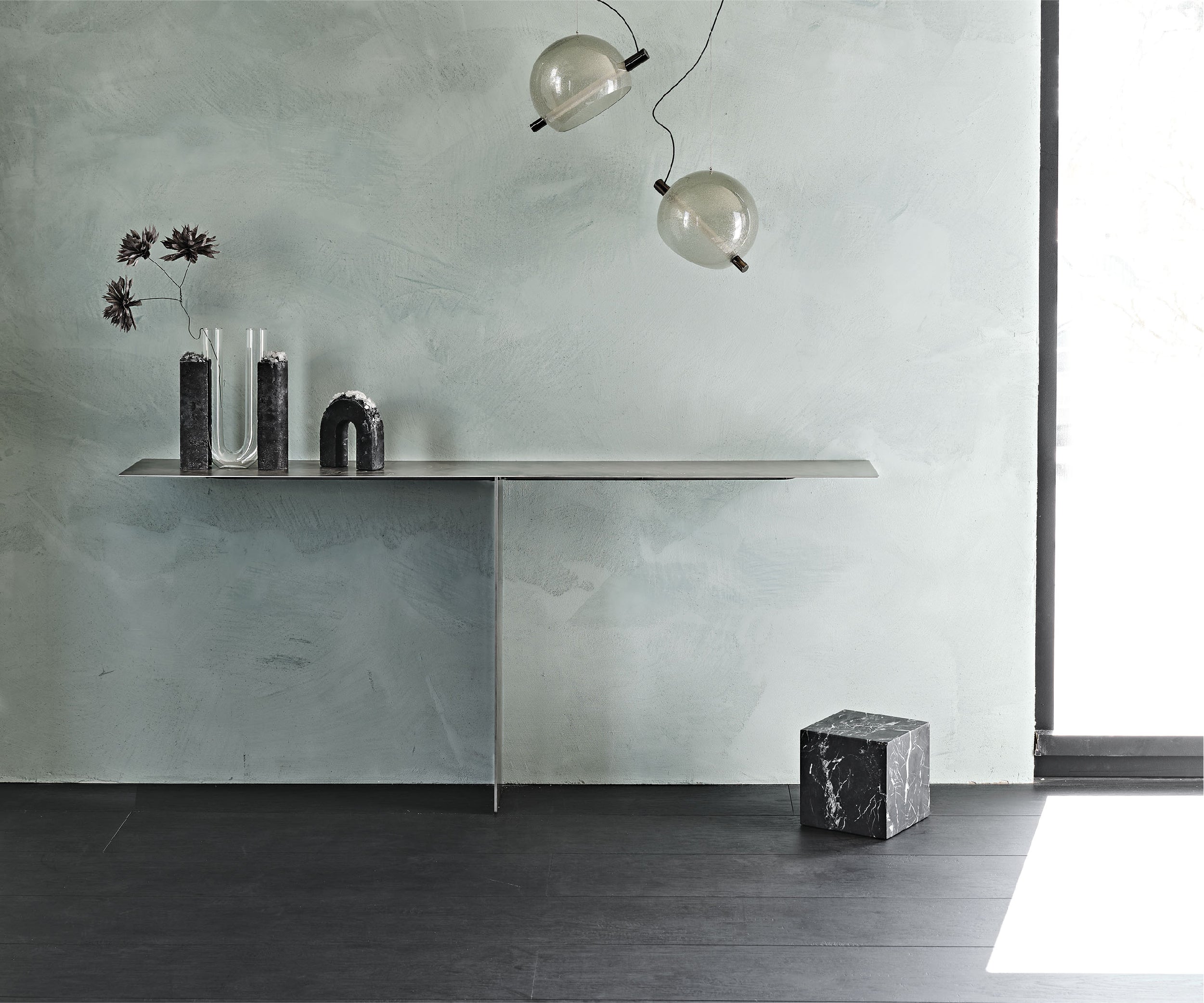 In creating this design console, Paolo Cattelan defines the shape starting from the material, a steel sheet, and not vice versa. The Tee console is an example of conceptual and structural minimalism.