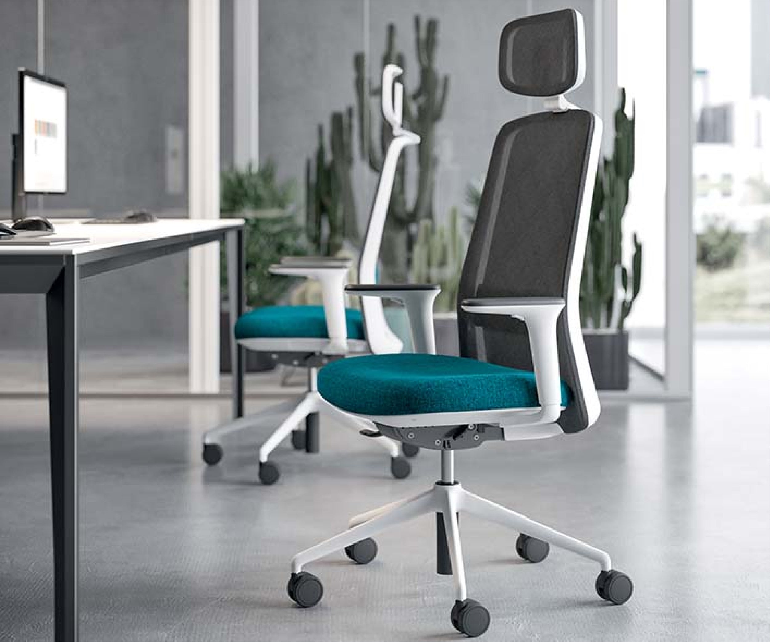 Diade Rock is available in two versions, tall with or without a headrest, and can be customised with features according to requirements. The seat and lumbar back rest cover is available in various fabric and colour options; the grey or black mesh back enriches the seat with a rock vibe.