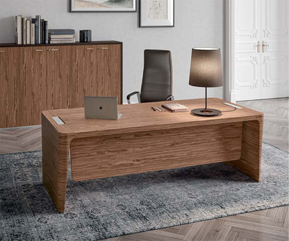 This desk is a triumph of finesse and manual flair, a sculptural and enveloping top with curved wood, tamed by artisan craftsmanship.