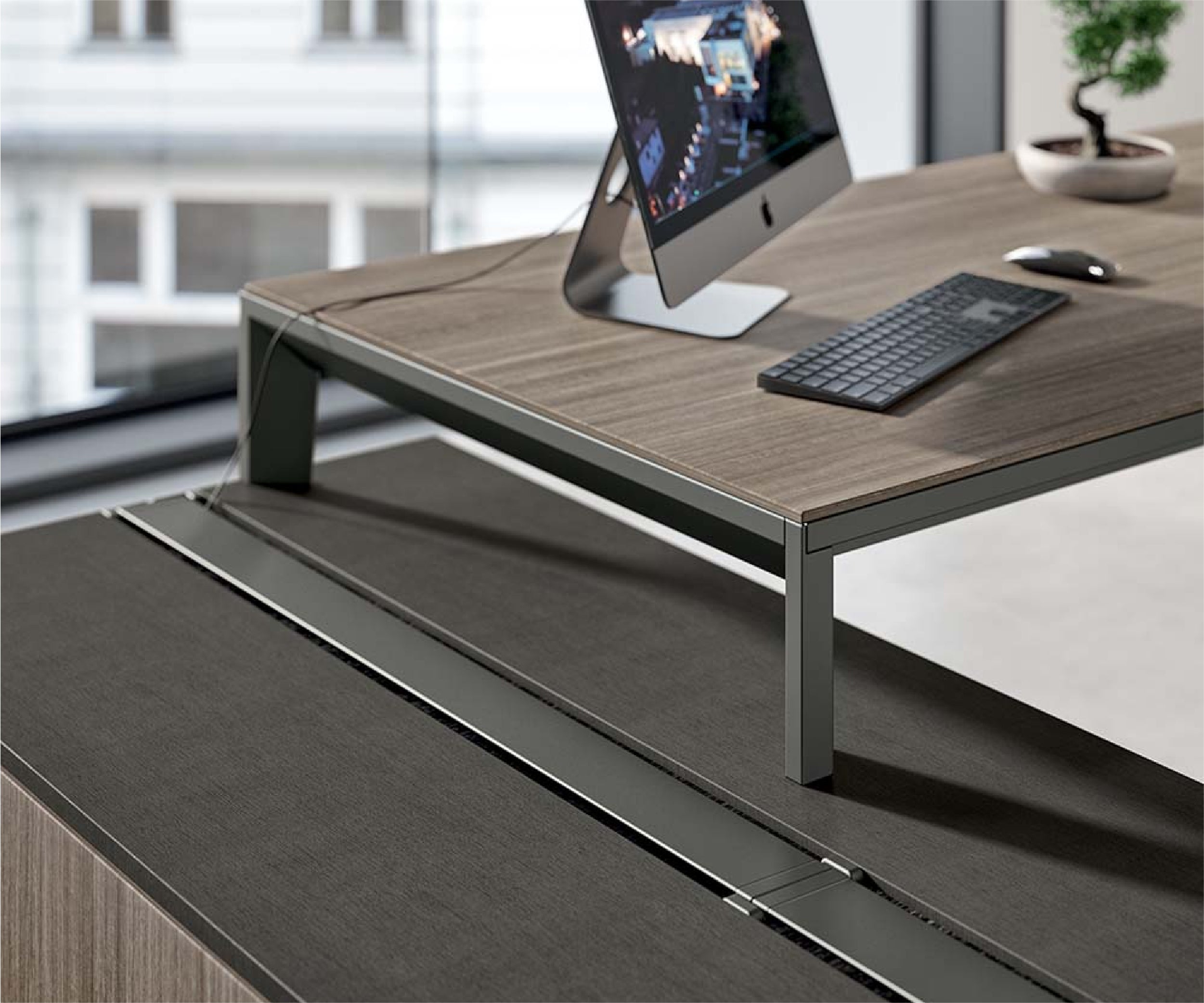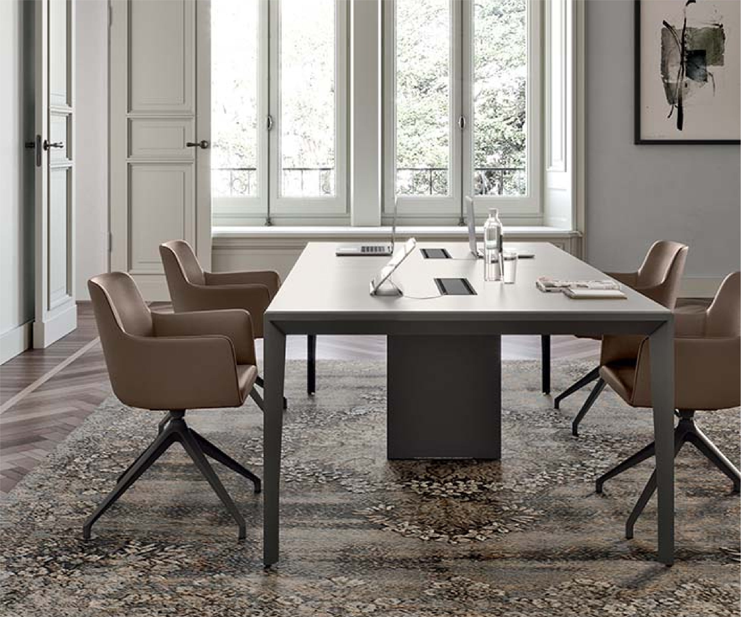 The pure lines and geometric shapes exalt table functionality and aesthetics, for flexible composition and versatile customisation.