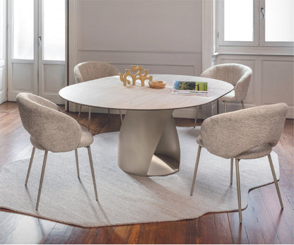 Anime is a chair with balanced proportions, offering maximum comfort thanks to its padded seat and backrest. The metal legs give it a contemporary touch, making it suitable together with the table for both classic and modern environments, always with elegance.